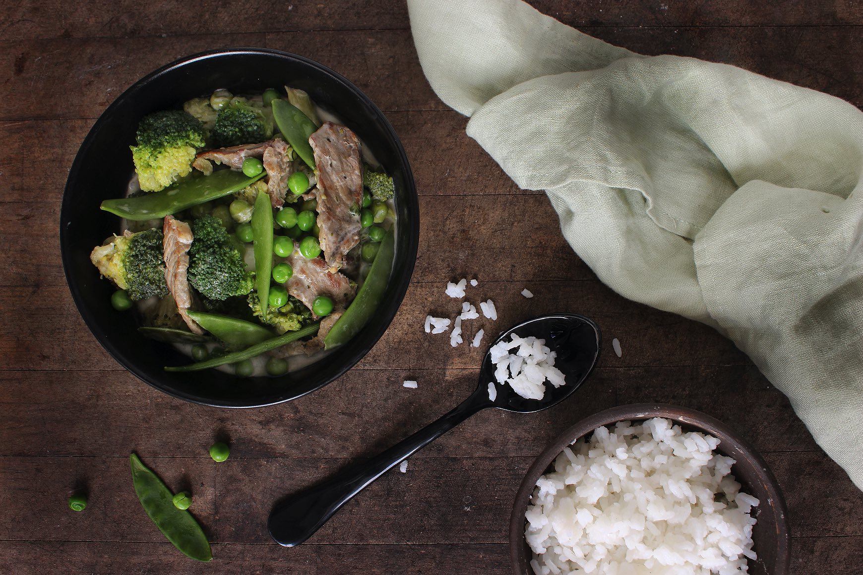 Grünes Gemüse-Curry mit Rindfleisch