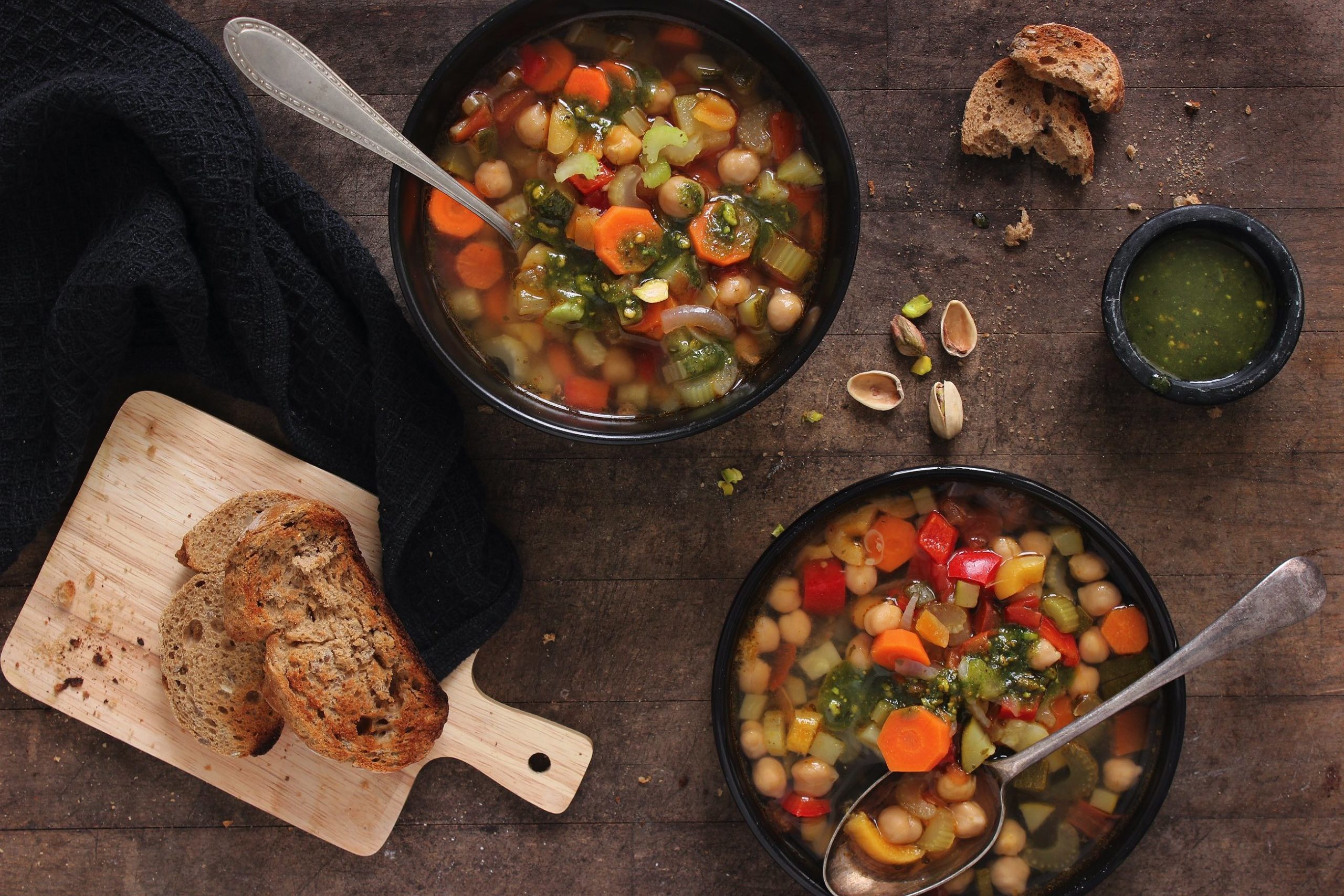 Marokkanische Gemüsesuppe mit Pistazien-Pesto